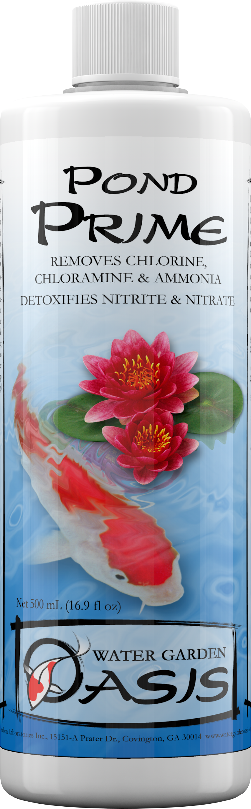 Pond Prime® is a complete conditioner that removes chlorine, chloramine, and detoxifies ammonia and nitrite. It also provides essential ions and stimulates natural slime coat. Pond Prime® also enhances nitrate removal. It will also detoxify any heavy metals found in the tap water at typical concentration levels. It should be the first choice conditioner when setting up a new pond, adding, or changing water. No other product is required to make water safe, even in high chloramine situations. Unlike competing products, Pond Prime® does not cause a pH drop or over-activate skimmers. A 500 mL bottle treats over 10,000 US gallons, much more than competing products.