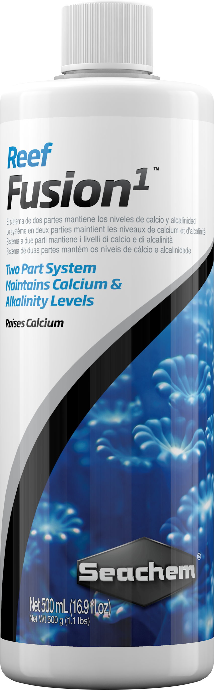 Reef Fusion 1™ and Reef Fusion 2™ are the foundation of a system formulated to provide the essentials for the reef aquarium. Reef Fusion 1™ provides calcium, while Reef Fusion 2™ provides alkalinity. When used together, the Reef Fusion™ system will maintain calcium and alkalinity levels. Reef Fusion 1™ provides not only 100,000 mg/L of ionic calcium, but also includes biologically appropriate levels of magnesium, strontium, boron, iron, manganese, and molybdenum. When used as directed, Reef Fusion 1™ and Reef Fusion 2™ will maintain the critical levels of calcium and alkalinity necessary for healthy coral growth, while providing biologically appropriate levels of other elements and trace minerals.